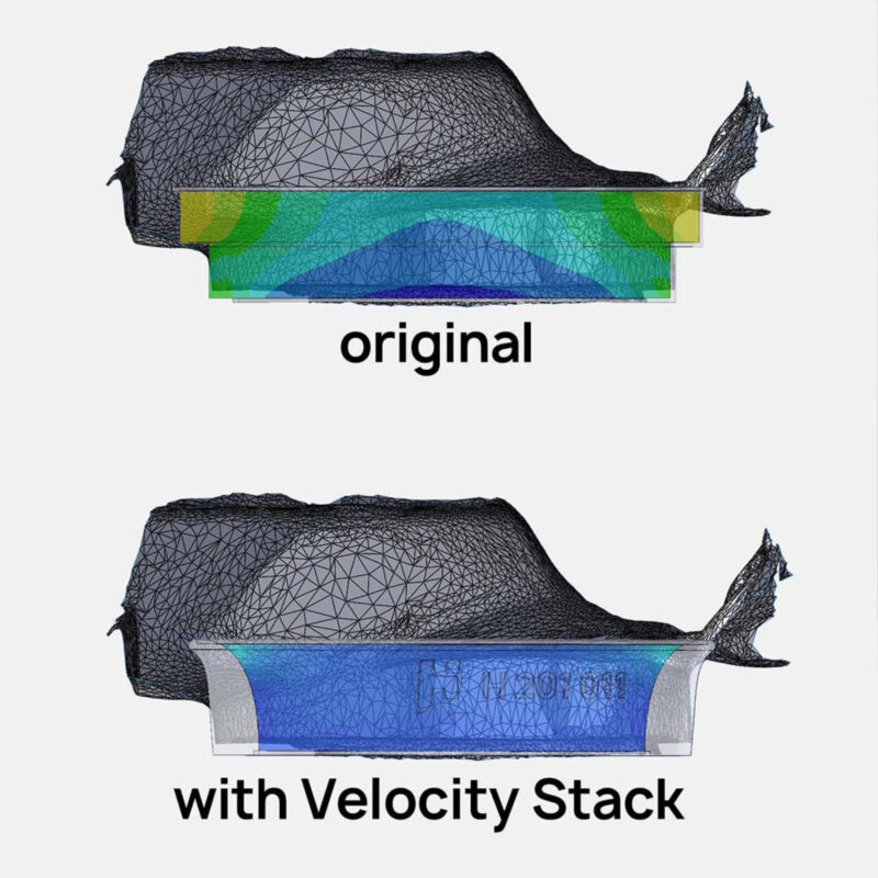 With the performance intake funnel for installation in the air filter housing of your W201 190E 2.6 with M103 engine, you can optimize the air flow of your intake. The improved flow rate of the Velocity Stack has been tested and confirmed in CFD simulations. This provides your engine with a higher volume of air for better volumetric efficiency.