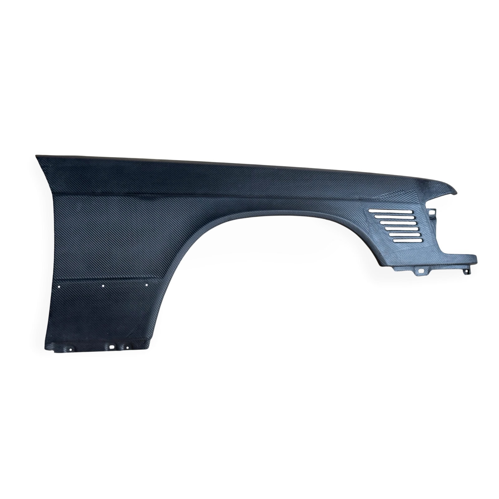 Hochwertiger Carbon Kotflügel als Ersatz für den nicht mehr erhältlichen Kotflügel A2018812201 des 190D 2.5 Turbodiesel mit Lüftungsschlitzen. Neben reinem Ersatz auch bestens geeignet für Motorumbauten wie M104 und M111 mit Ansaugung auf der rechten Fahrzeugseite.