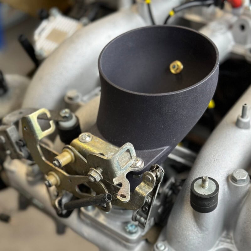 - Adapterrohr zur Verbindung des Luftfilterkastens mit der Drosselklappe (ersetzt das KE-Jetronic Luftmengenmesser Gehäuse, enthält einen Vakuum-Anschluss, der bei Bedarf aufgebohrt werden kann)