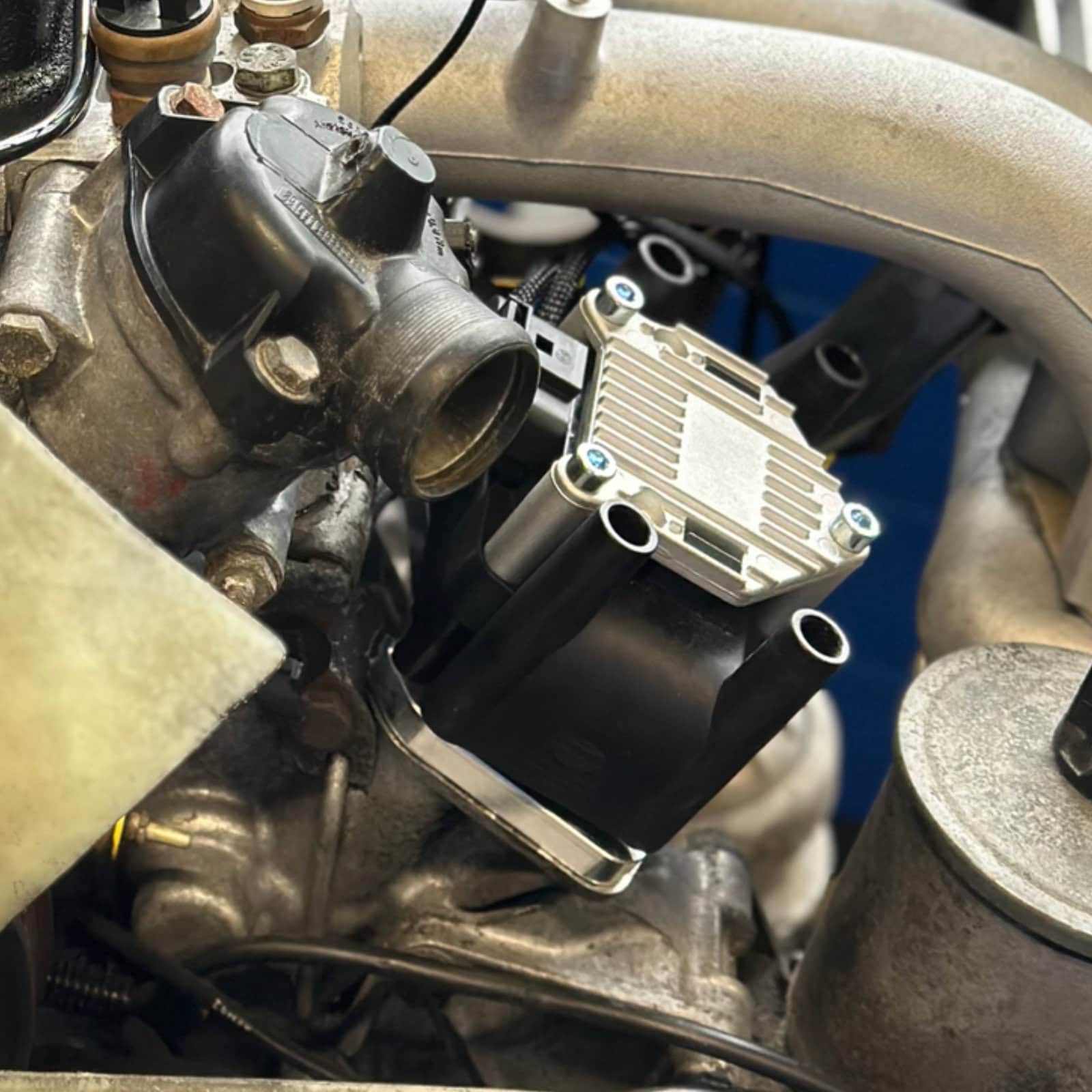 Die MaxxECU Motorsteuerung ist die empfohlene ECU. Du erhältst den passenden Kabelbaum mit vorbelegtem Stecker als Teil des Kits. Du kannst dabei aus mehreren Ausführungen des Steuergeräts wählen. Für ein simples Setup, welches die KE-Jetronic ersetzt und dabei möglichst originalgetreu aussieht, wähle die Street Variante. Upgrade auf die Sport Variante, wenn dir Zusatzfunktionen wie Bluetooth-Verbindung zum Steuergerät oder Flex-Fuel wichtig sind. Für ein fortgeschrittenes Setup mit Klopfregelung, Abgastemperatursensoren oder später geplantem Turbo-Umbau wähle die Race Variante.